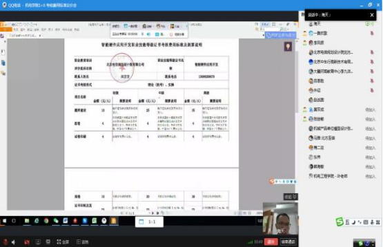 李凤银副院长首先代表学院对各证书评价组织人员的到来表示欢迎并对会议议程进行了说明;会上,广州中望龙腾软件股份有限公司代表张利对“机械产品三维模型设计”、北京中车行高新技术有限公司代表张保英对“汽车运用与维修”、大疆河南教育中心代表李九洋对“无人机操作应用”、 北方至信人力资源评价(北京)有限公司代表马雅对“多工序数控机床操作”、 北京电信规划设计院有限公司代表孙刚和北京杰创永恒科技有限公司代表刘方方对“智能硬件应用技术”等五个1+X取证工种,依次通过视频连线分别讲述了试点以来证书考试情况以及证书考核成本核算方案;其后学校各部门参会人员与培训评价组织根据教育部相关文件精神,围绕“1+X”证书考核形式、考核费用标准、各项考核成本明细及分担比例等进行了深入、细致的协商交流,对费用明细进行了逐条审议,最终对证书考核费用标准和收费明细形成了一致意见。