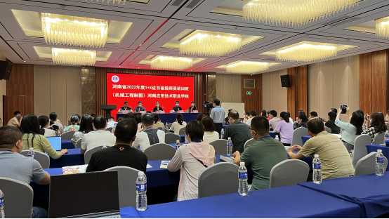 2022年7月25日上午,由河南省教育厅主办、河南应用技术职业学院leyu乐鱼在线登录入口承办的“机械工程制图1+X”技能证书省级师资培训(线下)班在郑州市杜康大酒店正式开班。我校副校长陈君丽,广州中望龙腾软件股份有限公司大区经理郑亚伦,教务处处长赵扬,leyu乐鱼在线登录入口院长黄双成,教务处副处长杨敏等出席开班仪式,仪式由黄双成院长主持。