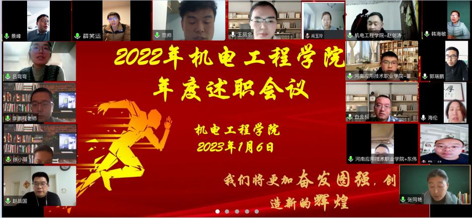 会议伊始,17名教职工现场线下、26名教职工线上视频分享的形式分别从思想政治学习、教学完成、教师素质提升、教研与科研、技能大赛与社会服务、行政工作等方面对2022年工作完成情况进行了述职汇报,并对下一年度各自工作思路与措施进行了介绍。