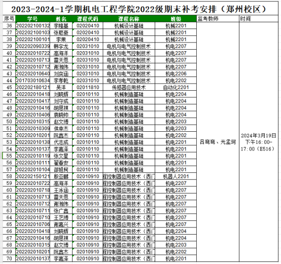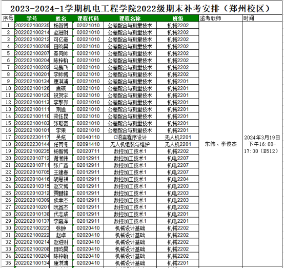 根据2023—2024学年第学期机电工程学院补考名单确定leyu乐鱼在线登录入口所承担的补考科目,并在leyu乐鱼在线登录入口学习通平台建立专业类理论课程的补考科目(课程)。
