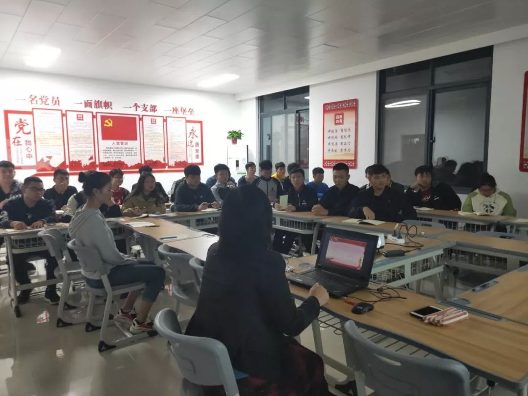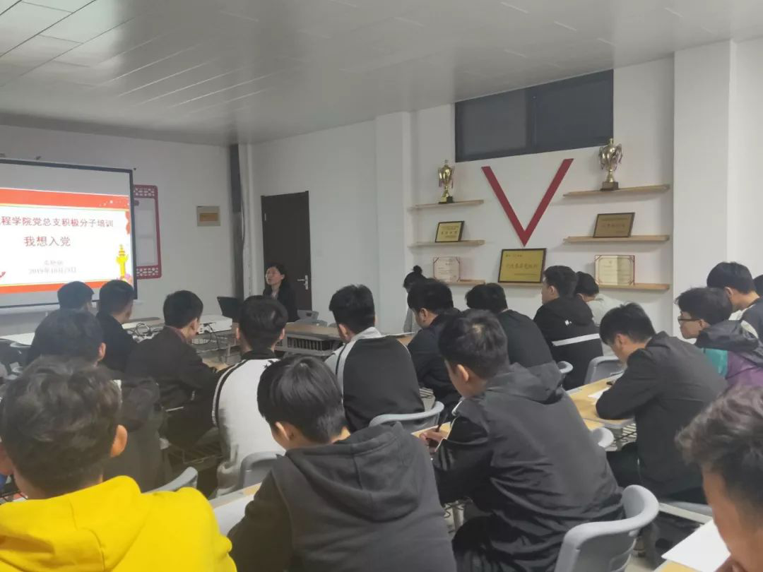 2019年10月23日,leyu乐鱼在线登录入口党总支入党积极分子培训在党员活动室办公楼212房间拉开帷幕,本次培训由党总支副书记邓艳丽从五个方面为同学们主讲党课--《我想入党》。