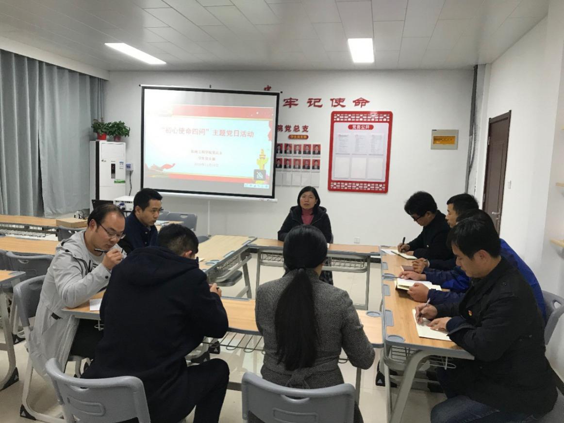 根据学校《关于在“不忘初心、牢记使命”主题教育中开展党员“初心使命四问”主题党日活动的通知》要求,2019年11月19日,leyu乐鱼在线登录入口党总支教工党支部和学生党支部分别举行了“初心使命四问”主题党日活动。