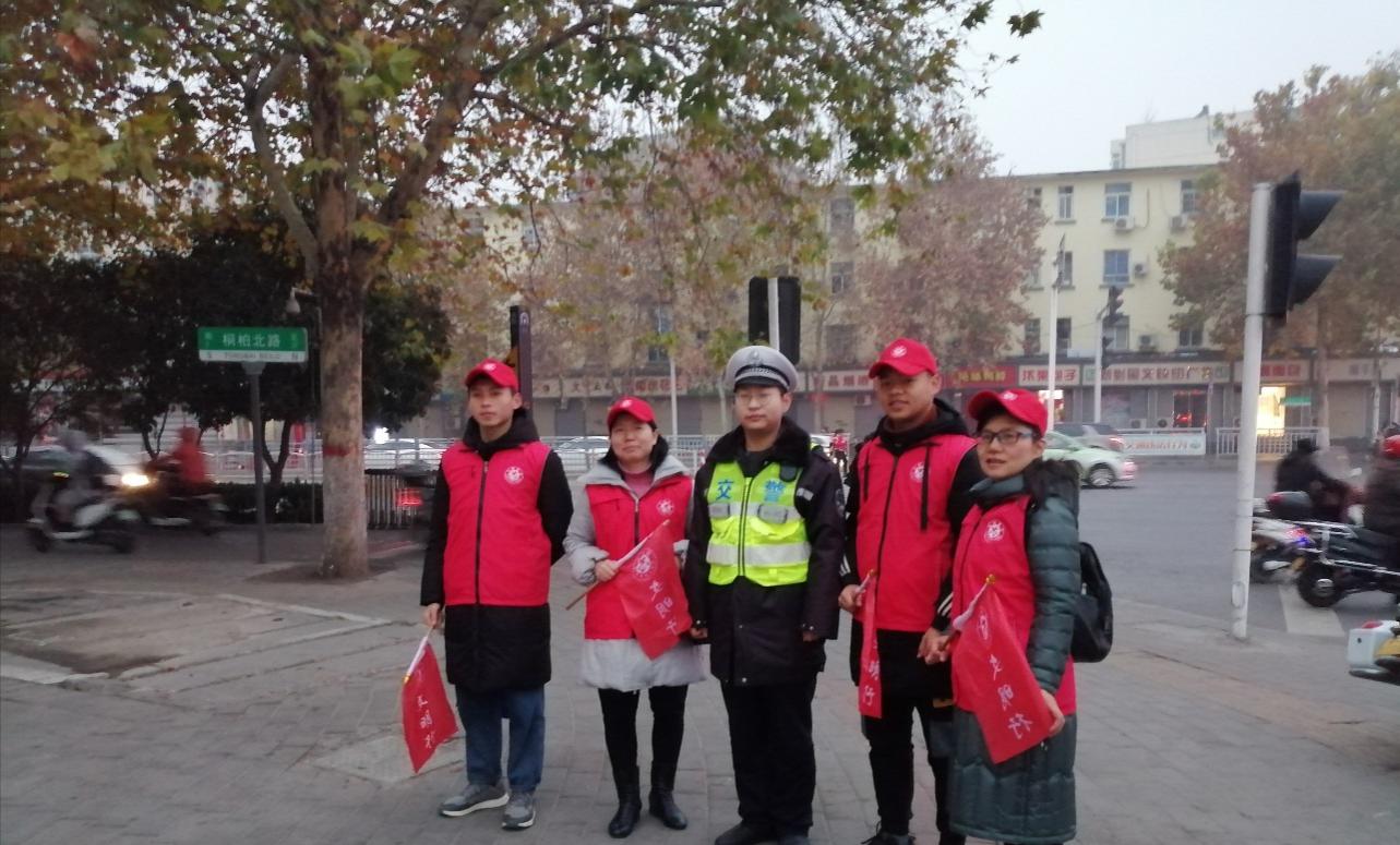为了进一步推动郑州市文明城市建设,我校承担了桐柏路和棉纺路交通岗文明出行的交通志愿服务活动。2019年12月25日早上7点20分,leyu乐鱼在线登录入口党总支邓艳丽副书记带领文明交通岗志愿服务团队到达岗位,并与该路口的交通民警进行沟通,具体了解执行任务要求。然后开始协助民警维持早高峰7点半至8点半的交通秩序,及时劝阻一些不文明出行行为。