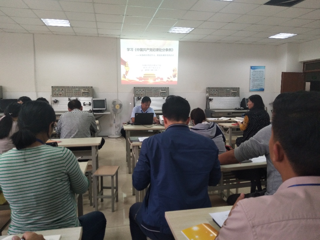 根据学校党委工作安排,2018年9月25日下午,leyu乐鱼在线登录入口党总支组织全体教职工认真学习了《高校民族宗教工作知识读本》,组织全体党员原原本本学习了《中国共产党纪律处分条例》全文。学习共分两个阶段进行。