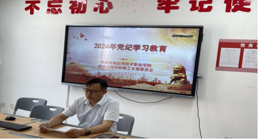 教工党支部书记黄双成总结发言,对新转正的党员们表示热烈的祝贺,继续严格要求自己,增强党员的责任心,在工作中勇挑重担,起到党员的先锋模范作用,努力成为一名合格的党员。特别强调,作为一名共产党员要时刻牢记党的宗旨和使命,不断加强自身建设和学习提高,为学校和学院的发展贡献自己的力量。借此机会,黄双成书记为全体党员上了一堂生动的党纪学习教育党课,进一步强调了党员们的纪律意识和规矩意识。