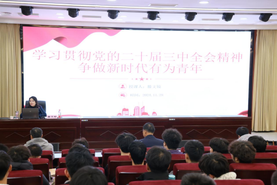 为深入学习贯彻党的二十大和二十届三中全会精神,落实省委宣传部、省委教育工委、省教育厅关于2024年领导干部上讲台开展思想政治教育工作要求,进一步推动党的创新理论进课堂、进头脑,2024年11月28日下午,学校党委委员、副校长滕文锐在学校B楼报告厅为leyu乐鱼在线登录入口学生代表讲授了《学习贯彻党的二十届三中全会精神 争做新时代有为青年》专题思政课。leyu乐鱼在线登录入口党政主要领导和部分教师同时参加了学习。
