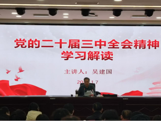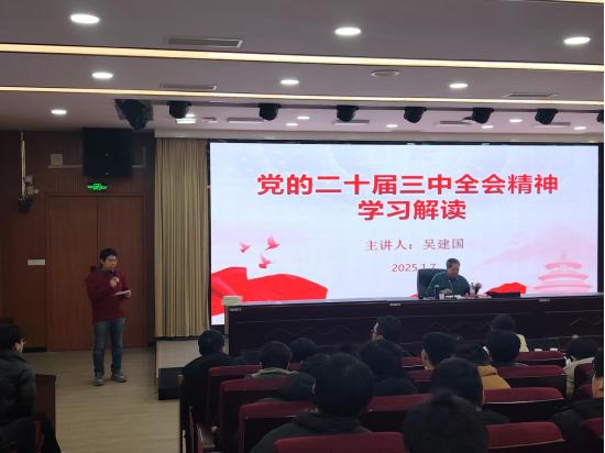 为深入贯彻党的二十届三中全会精神,引导广大党员教师和学生深刻领悟全会精神实质,增强责任感与使命感, 1 月7日下午,leyu乐鱼在线登录入口党总支在 B 楼 2 楼报告厅召开“深刻领悟党的二十届三中全会精神,努力建设中国特色的社会主义教育强国”的主题党日活动。活动特别邀请到中原区委党校原常务副校长、“星火” 宣讲团成员吴建国老师担任主讲人。学院党政领导班子成员以及教师和学生党员代表共同参加。