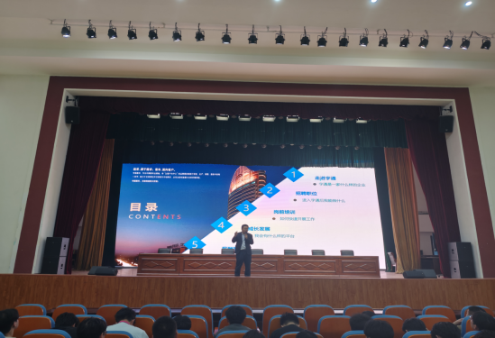 宣讲环节中,宁卫广详细全面地介绍了公司的企业文化、招聘职位、发展前景、培训体系以及薪酬福利等关键信息,通过生动的视频讲解、丰富的案例展示,让同学们对宇通客车的企业价值观、业务范围和未来规划有了更深入的了解。强调了宇通客车在行业内的领先地位以及广阔发展空间,明确阐述了各岗位的职责要求和技能需求,为同学们提供了清晰的职业方向指引。完善的培训体系和具有竞争力的薪酬福利政策也引起了同学们的浓厚兴趣。