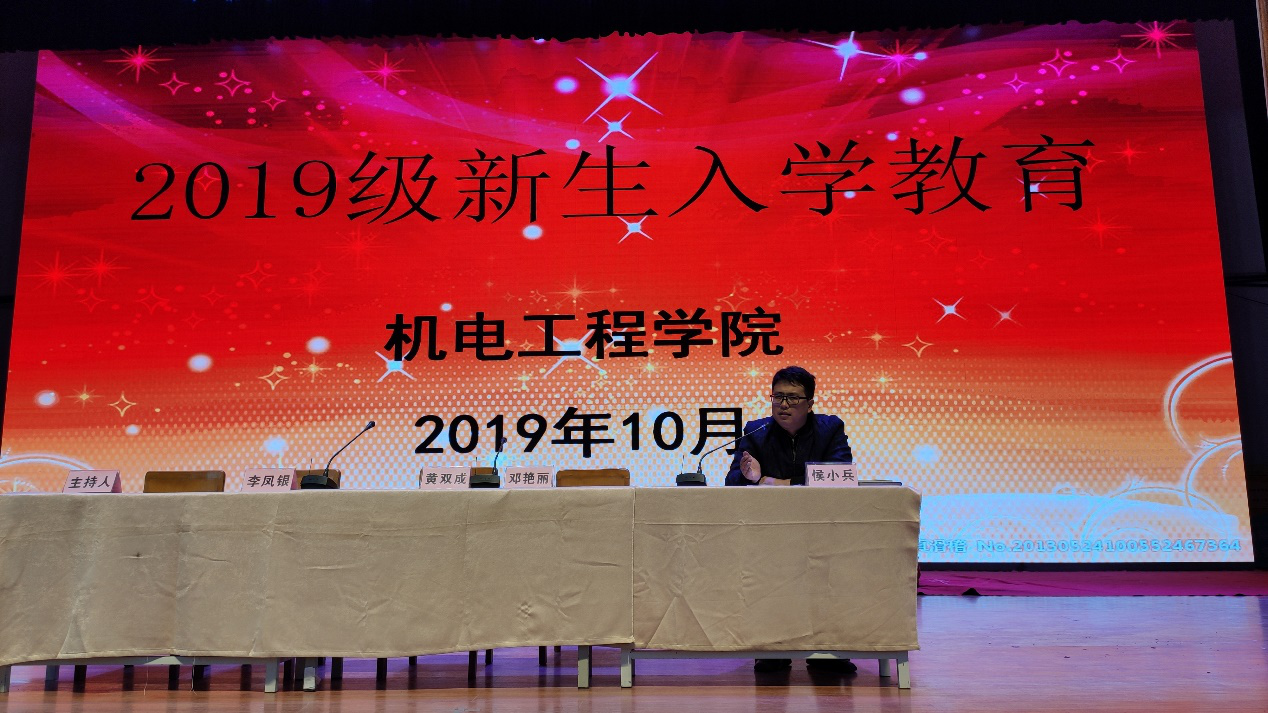 2019年10月8日上午10点,leyu乐鱼在线登录入口在大礼堂举行2019级新生入学教育。出席本次会议的有:学院院长黄双成、学院党总支副书记邓艳丽、学院副院长李凤银、学院学工部主任侯小兵及2019级新生及辅导员。会议由学院团总支书记常惟诚主持。