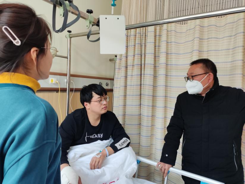 寒假期间,机电2002班学生遆梦贺在实习单位受伤,该生家庭特别困难,父亲外地打工,母亲在家照顾老人无法分身,一直是学校的重点资助对象,两次荣获国家励志奖学金。leyu乐鱼在线登录入口书记张亮和院长黄双成接到实习老师和辅导员汇报后,紧急委派副院长李凤银和资助专员江丽梅赶往安徽芜湖探望受伤学生。通过了解学生情况,与学生姐姐充分交流,了解了学生及家长的需要,访后及时跟踪,将“关心、关爱“学生的工作做到“家”,着力推进资助育人的“实、细、长、深”,认真征求学生家长对学校资助育人工作的意见或建议勉励学生学会在逆境中成长,以优异成绩感恩父母、回报社会。