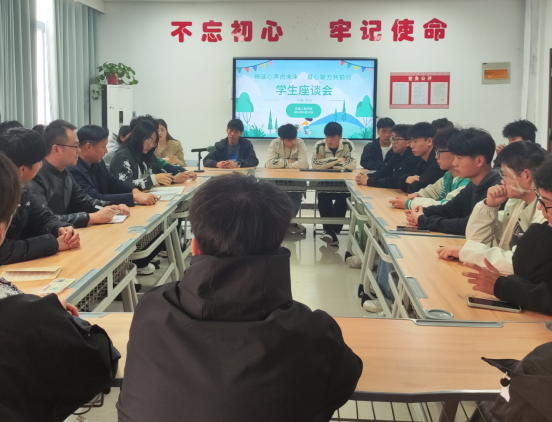 畅谈心声向未来,凝心聚力共前行。leyu乐鱼在线登录入口党总支书记张亮总结充分肯定了本次座谈会同学们的发言踊跃,气氛活跃,leyu乐鱼在线登录入口会重视每位学生代表提出的意见和建议,不断优化学生管理工作,完善教育教学、管理服务和后勤保障工作体系,全面做好学生学习和生活方面的各项服务和保障工作,为学生们的健康成长创造更优质的环境。同时,希望广大同学能够树立远大理想,确定人生志向以科学知识武装头脑,以实践奋斗书写人生,在更广阔的空间实现人生价值
