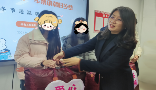 在温馨的交谈过后,滕文锐专程为学生们一一送上车票和棉被。一张张车票,仿佛是通往家的温暖桥梁,承载着学校对同学们归家路途的贴心关怀,让学子能够顺利踏上归程,与家人相拥,共享温馨时光。一床床棉被,恰似冬日里的温暖怀抱,为同学们抵御严寒,让学子在这个寒冷的季节里,感受到学校这个大家庭如春风般的关爱。