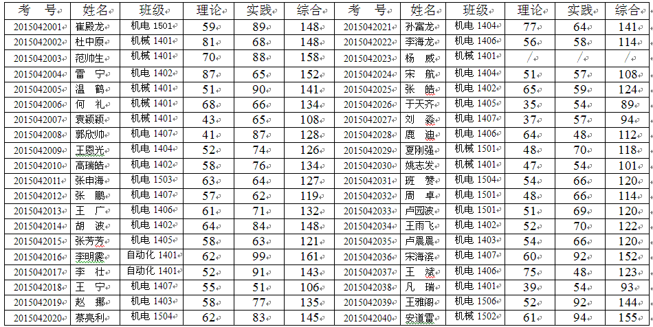 机械电子系第四届电工与电子技能大赛决赛成绩