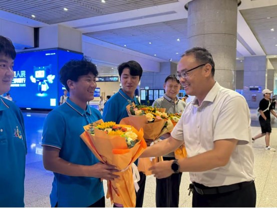 载誉归来之际,黄振中专程前往高铁站迎接获奖团队。他向指导老师、参赛选手表示热烈祝贺和亲切慰问,并指出,这一奖项的获得是学校职业教育发展的又一重要成果,希望学校师生们以本次比赛为新起点,再接再厉、深耕不怠,以更为优异的成绩为学校事业高质量发展贡献更大力量。团队成员向学校党委给予团队的关心、指导和帮助表示感谢,他们表示将再接再厉,不断把课堂所学与实际应用紧密结合,力争取得更好成绩